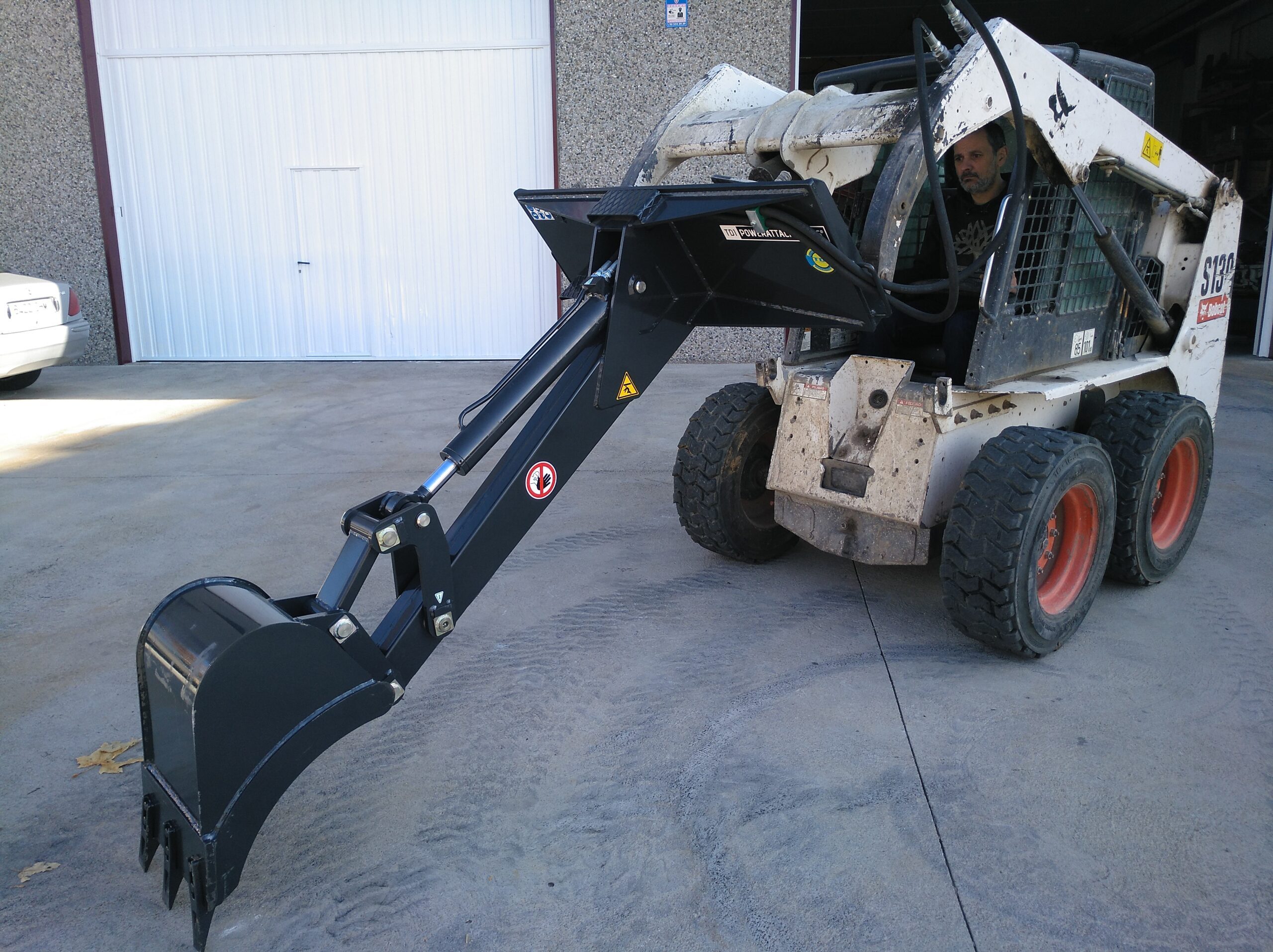 El brazo excavador fijo está fabricado de una manera robusta y resistente. Equipa un cilindro hidráulico de gran potencia para articular la cuchara de 400mm de ancho (incluida). Está equipado con enganche universal y tomas hidráulicas para máquina portante, por lo tanto, tampoco tendrás que realizar ninguna operación sobre la minicargadora.